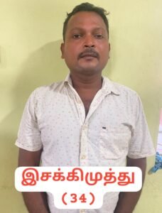 அதன் அடிப்படையில் இன்று (04.10.2023) பெரியநாயக்கன்பாளையம் காவல் நிலைய எல்லைக்குட்பட்ட அத்திப்பாளையம் to இடிகரைரோடு பகுதியில் தமிழக அரசால் தடை செய்யப்பட்ட, புகையிலைப் பொருட்களை விற்பனைக்கு வைத்திருந்த சரவணம்பட்டி பகுதியைச் சேர்ந்த தங்கவேல் மகன் இசக்கிமுத்து(34)என்பவரை கைது செய்து அவரிடமிருந்து ரூ.1,80,000/- மதிப்புள்ள 225 கிலோகிராம் தடை செய்யப்பட்ட புகையிலை பொருட்களை பறிமுதல் செய்து மேற்படி நபரை நீதிமன்ற காவலுக்கு உட்படுத்தினர்.