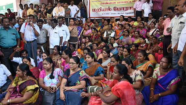 சம வேலைக்கு சம் ஊதியம் கோரிக்கைகளை வலியுறுத்தி ஆசிரியர்கள் போராட்டத்தில் ஈடுபட்டனர்
