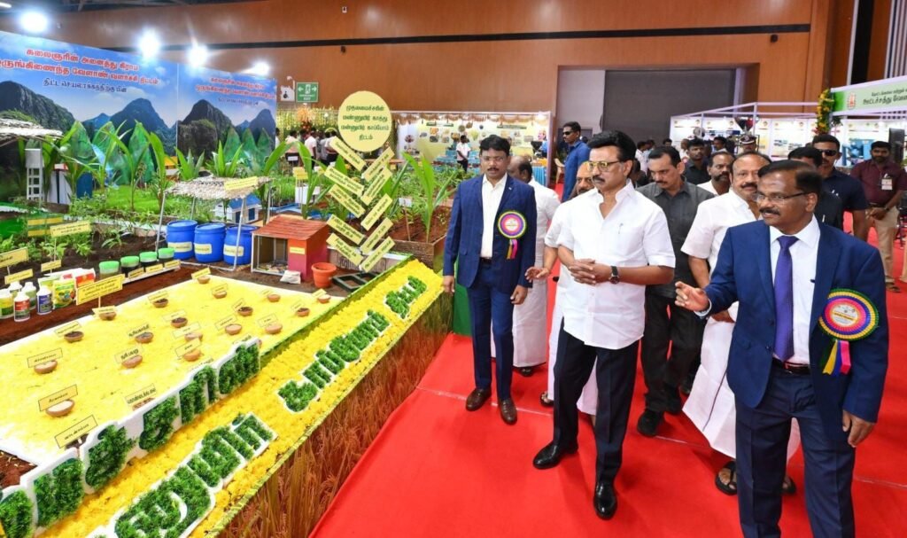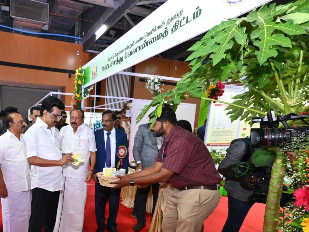 வேளாண்மை மற்றும் உழவர் நலத்துறை சார்பில் ‘வேளாண் வணிகத் திருவிழா -2025’-ஐ சென்னை வர்த்தக மையத்தில் தமிழ்நாடு முதலமைச்சர் மு.க.ஸ்டாலின் இன்று தொடங்கி வைத்தார். இதில், வேளாண் விற்பனை மற்றும் வேளாண் வணிக செயல்பாடுகள் குறித்த கண்காட்சி அரங்குகள் மற்றும் கருத்தரங்கம் இடம்பெற்றுள்ளது. அதனைத் தொடர்ந்து மேடையில் பேசிய முதலமைச்சர் மு.க.ஸ்டாலின், “வேளாண் விளைபொருட்களை, நேரடியாக சந்தைப்படுத்த இந்த கண்காட்சியும், கருத்தரங்குகளும் விவசாயிகளுக்கு நல்ல வாய்ப்பாக அமைந்திருக்கிறது. இந்த முன்னெடுப்பு விவசாயிகளுக்கு புதிய சாகுபடி முறைகள் மற்றும் வேளாண் வணிக வாய்ப்புகளை பற்றி தெரிந்து கொள்வதற்கான முக்கிய தளமாக அமைந்திருக்கிறது. இதனால், உள்நாட்டு மற்றும் பன்னாட்டு சந்தை வாய்ப்புகள் உருவாகுவதோடு, ஏற்றுமதிக்கான வாய்ப்பு இன்னும் அதிகளவில் ஏற்படும். வேளாண் வணிகம் தொடர்பான கருத்தரங்குகள் மற்றும் பயிற்சிகளால், விவசாயிகளின் வணிகத்திறன் மேம்படும்.
