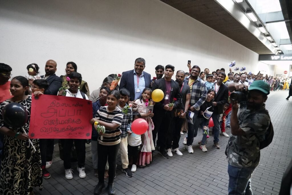 தமிழகத்துக்கு முதலீடுகளை ஈர்ப்பதற்காக முதல்வர் ஸ்டாலின் நேற்று காலை 9 மணிக்கு விமானத்தில் ஜெர்மனிக்கு புறப்பட்டுச் சென்றார். முதல்வர் ஸ்டாலினின் மனைவி துர்கா ஸ்டாலின், முதல்வர் ஸ்டாலினின் செயலர்கள், அமைச்சர் டிஆர்பி ராஜா, பாதுகாப்பு அதிகாரிகளும் உடன் சென்றனர். நேற்று இரவு 9 மணியளவில் ஜெர்மனி சென்றடைந்தார் ஸ்டாலின். அங்கு அவருக்கு ஜெர்மனி வாழ் தமிழர்கள் உற்சாக வரவேற்பு அளித்தனர். தமிழர்களின் குடும்பங்களைச் சேர்ந்த குழந்தைகள், தமிழக முதல்வர் ஸ்டாலினை உற்சாகத்துடன் வரவேற்றனர். ஜெர்மனியில் தமிழர்களின் பாசத்தைக் கண்டு நெகிழ்ச்சி அடைந்ததாக ஸ்டாலின் X தளத்தில் பதிவு செய்துள்ளார். தமிழர்களின் சாதகமான அம்சங்களை எடுத்துக் கூறி முதலீடுகளை ஈர்க்க நடவடிக்கை மேற்கொள்வதாகவும், வெளிநாட்டு முதலீடுகளை ஈர்த்து பிரகாசமான எதிர்காலத்தை உருவாக்குவதை உறுதி செய்வோம் என்றும் முதல்வர் ஸ்டாலின் தெரிவித்துள்ளார்.