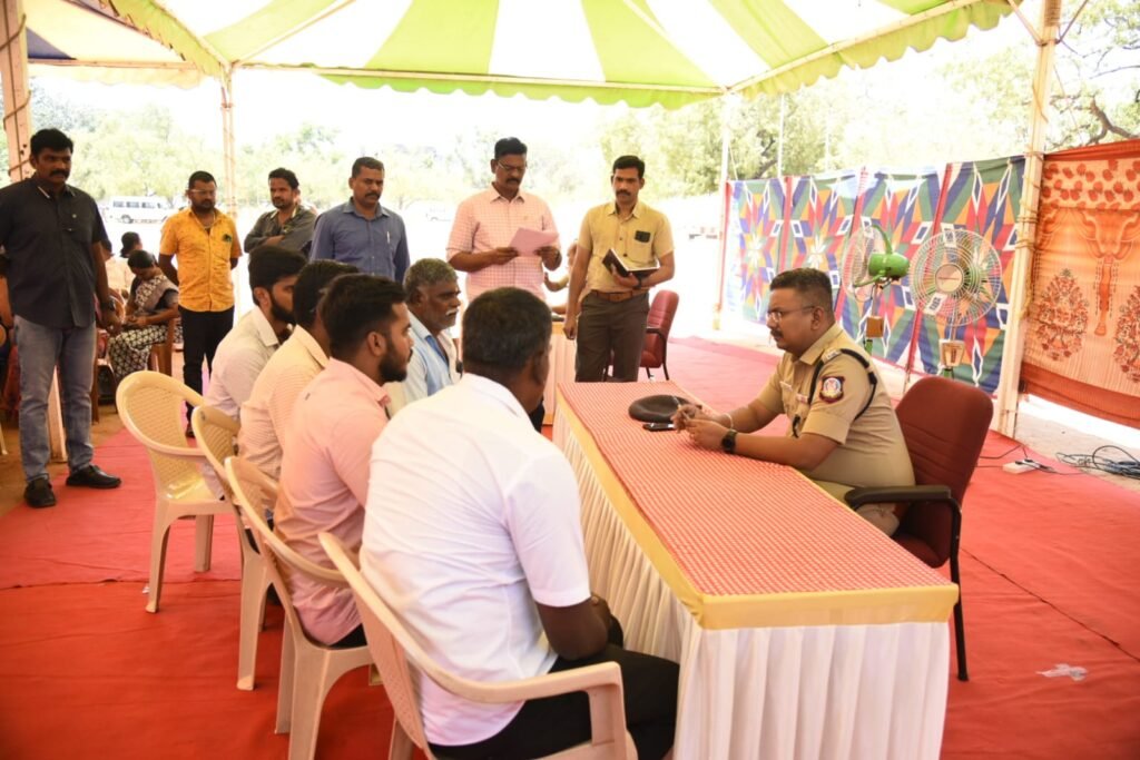 மாண்புமிகு தமிழக முதல்வரின் ஆணைக்கிணங்க பொதுமக்கள் கொடுத்த மனுக்களின் மீது விசாரணை மற்றும் ஏற்கனவே விசாரித்து எடுக்கப்பட்ட நடவடிக்கையில் திருப்தி அடையாத மனுக்களை கண்டறிந்து அம்மனுக்கள் மீதான மறுவிசாரணை (Re-enquiry) இன்று (04.10.2023) மாவட்ட காவல் கண்காணிப்பாளர் பத்ரிநாராயணன் அவர்கள் தலைமையில், மாவட்ட ஆயுதப்படை மைதானத்தில் நடைபெற்றது