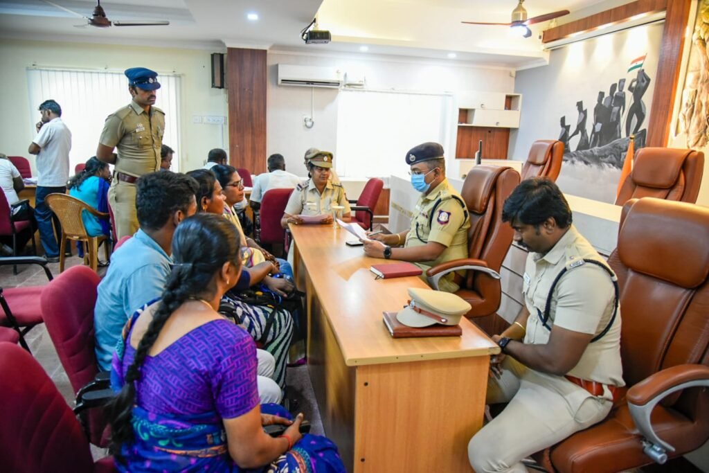 மேலும் மனுக்களின் மனுதாரர்கள் மற்றும் எதிர்மனுதாரர்களை நேரில் வரவழைத்து அவர்களின் மனு மீதான விசரணையை மாவட்ட காவல் கண்காணிப்பாளர் மற்றும் காவல் அதிகாரிகள் மேற்கொண்டு, அம்மனுக்களுக்கு தீர்வு காணப்பட்டது.