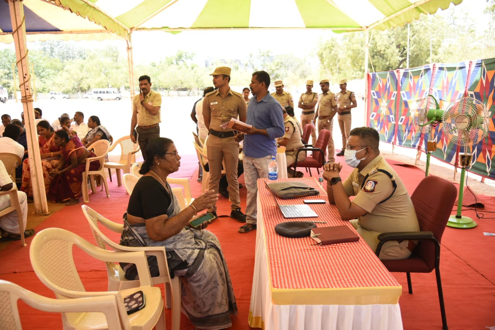 மாண்புமிகு தமிழக முதல்வரின் ஆணைக்கிணங்க பொதுமக்கள் கொடுத்த மனுக்களின் மீது விசாரணை மற்றும் ஏற்கனவே விசாரித்து எடுக்கப்பட்ட நடவடிக்கையில் திருப்தி அடையாத மனுக்களை கண்டறிந்து அம்மனுக்கள் மீதான மறுவிசாரணை (Re-enquiry) இன்று (04.10.2023) மாவட்ட காவல் கண்காணிப்பாளர் பத்ரிநாராயணன் அவர்கள் தலைமையில், மாவட்ட ஆயுதப்படை மைதானத்தில் நடைபெற்றது