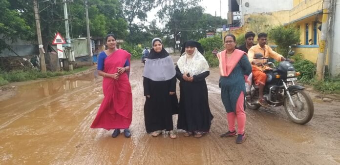 மேட்டுப்பாளையம் பத்திரகாளியம்மான்கோவில் சாலையில் குழியும் குண்டுமாக தண்ணீர் தேங்கி நின்று பொதுமக்களுக்கும் போக்குவரத்துக்கும் இடையூறாக இருந்த பகுதியை நகராட்சி அதிகாரிகள் நகர மன்ற தலைவர், நகர மன்ற துணைத் தலைவர், நகரமன்ற உறுப்பினர் நேரில் சென்று பார்வையிட்டு விரைவாக சாலையை சரி செய்ய நடவடிக்கை எடுப்பதாக உறுதியளித்தனர்.