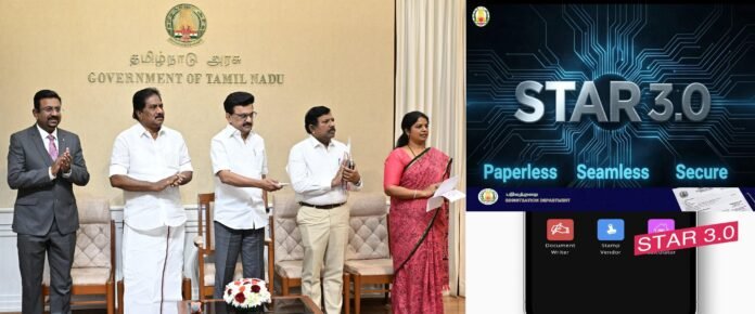 இந்நிலையில், சென்னை தலைமைச் செயலகத்தில் பதிவுத்துறையின் ஸ்டார் 3.0 திட்டத்தின் கீழ், காகிதமில்லா ஆவணப்பதிவு, நேரடி வருகையில்லா ஆவணப்பதிவு, தானியங்கி பத்திர உருவாக்கம், மறு விற்பனையாகும் அடுக்குமாடி குடியிருப்புகளுக்கு கட்டடக் களப்பணியின்றி ஆவணங்களை அன்றே திரும்ப வழங்கும் திட்டம், சொத்து தொடர்பான பரிவர்த்தனைகளை எளிய முறையில் வில்லங்கச்சான்றில் தேடுதல் உள்ளிட்ட 18 சேவைகள் அடங்கிய செயல் திட்டத்தை தமிழ்நாடு முதலமைச்சர் மு.க.ஸ்டாலின் இன்று (ஜன.22) தொடங்கி வைத்தார்.